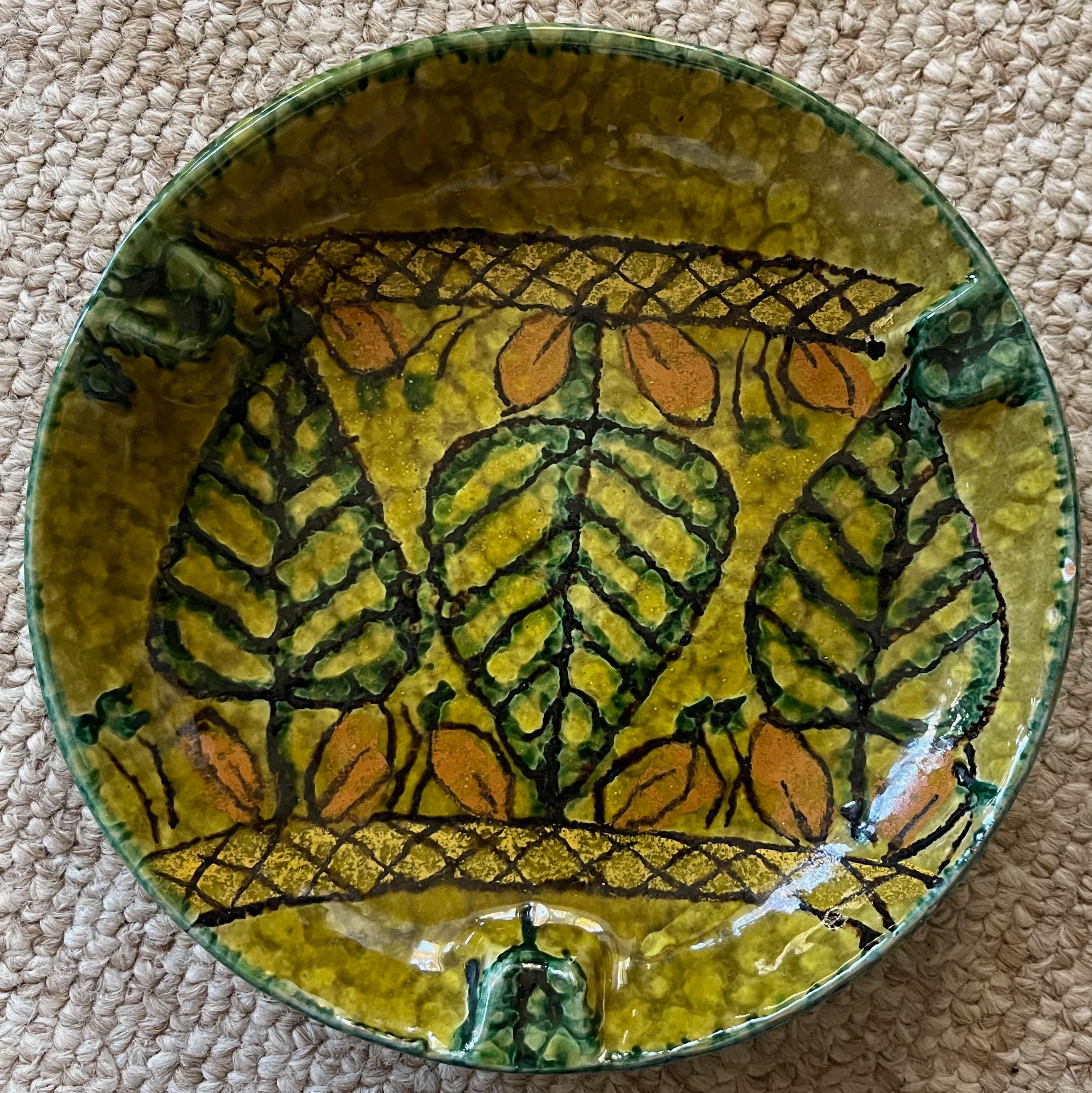Item: For your consideration we are presenting for sale a vintage, round ceramic ashtray. Circa '60s. Theme: Leaves. Colors: Green, Yellow, Orange. Marked "Italy" on the underside (see photo).