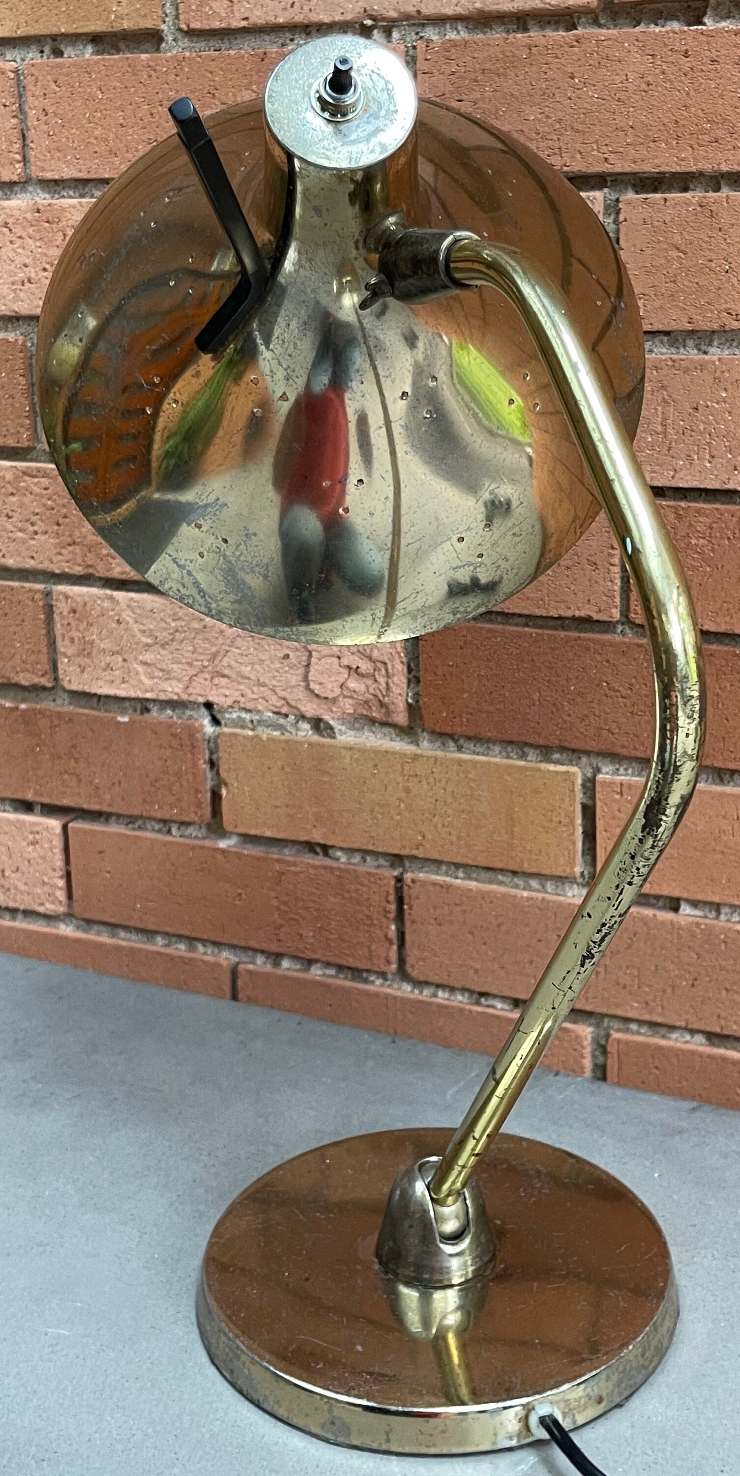 Condition: Overall the lamp is in decent condition, but not perfect - mainly cosmetic stuff. The brass shows signs of scratching and some discoloration / tarnishing spots from age. We have not attempted to clean and/or polish the lamp, but it could certainly liven it up a bit. There are no dents, dings, rust, repairs, etc. The adjustment points for both the neck and shade work well - they hold their positions without slippage. The underside of the shade shows discoloration / spotting (see photo). The electrical wiring appears to be original, and is in great shape - no frays, splits, exposed and/or brittle areas. The lamp is in fully-functioning, working order. This lamp would make a great candidate for refurbishing, but it's completely presentable and functions appropriately in its current state. As with all vintage lighting, we always strongly urge to have the wiring inspected by a licensed professional prior to long-term use. Being sold "as-is" - if you have questions, we do encourage you to ask them before purchasing as all sales are final. Please bid with confidence.